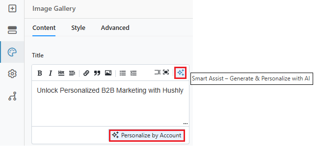 - To further personalize the Title and Subtitle using AI-generated text, click on Smart Assist. To learn more, click here.