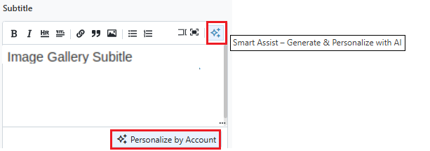 - Enter a Subtitle. To hide the Subtitle, leave the Subtitle field empty. You can personalize the Subtitle using Smart Assist or Personalize by Account.