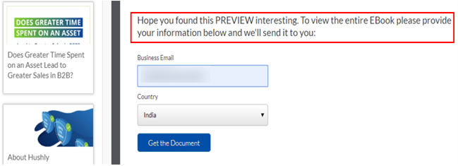 - If the Fulfillment URL is not configured, the user views the entire Asset and any related content, hosted on a Hushly domain, app.hushly.com/asset.