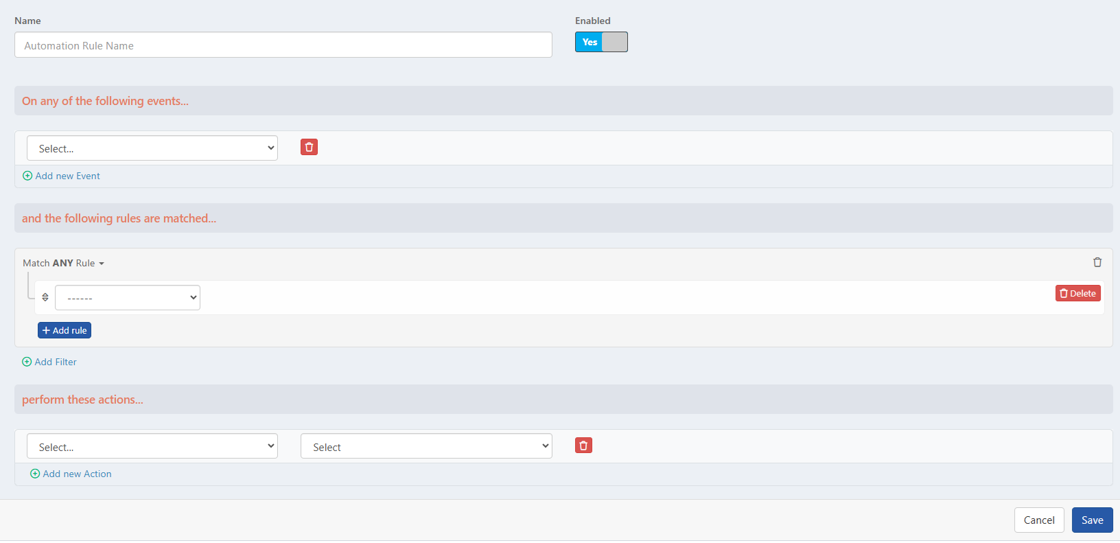 - Enter a Name for the automation rule.