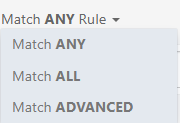 The Rule Matching section allows users to define the conditions that must be met for the automation rule to execute. Users can choose to match ANY rule, ALL rules, or an Advanced rule, depending on the desired logic.