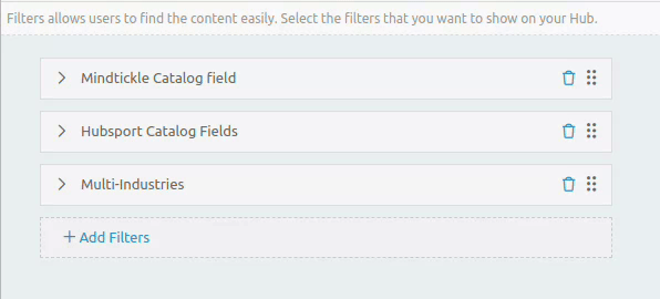 In a Hub, Asset filtering is a key feature. Filtering enables users to view only the content pertinent to their needs when searching a resource Hub.