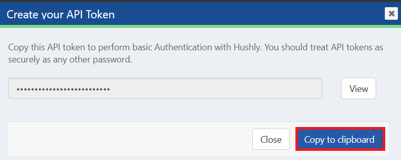 - Click Copy to clipboard to copy your API Token.