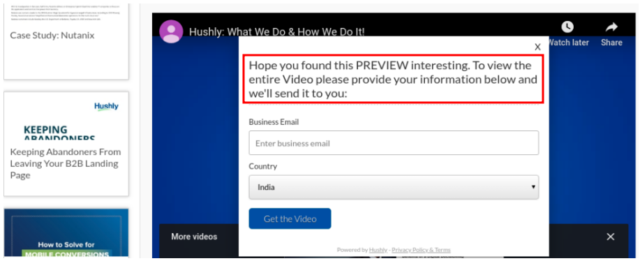 - If the Fulfillment URL is not configured, the user views the entire Asset, and any related content, hosted on a Hushly domain, app.hushly.com/asset.