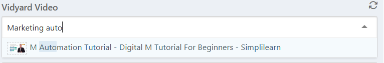 - The Vidyard Video field is automatically populated with the video name entered during the creation process.