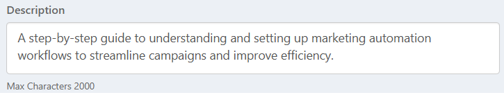 - Enter an SEO Description. The content of this field appears as the description in search engine results. This description is relevant when you are deploying Hubs.