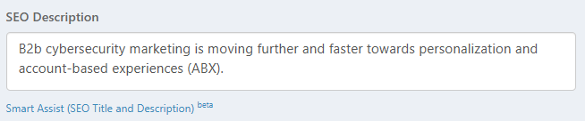 - You can also use the Smart Assist (SEO Title and Description) beta link to automatically recommend an option that is most suitable for your asset's SEO Title and Description. Click here to learn how.