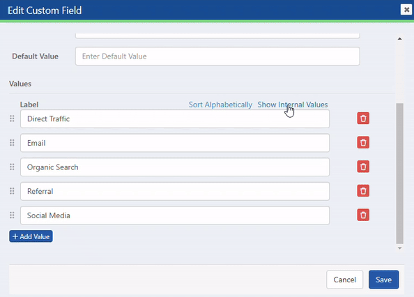 - The values can also be sorted by clicking on the Sort Alphabetically link.