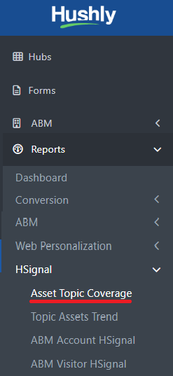 - From the Left Nav Menu, go to Reports > HSignal > Asset Topic Coverage.