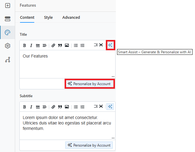 - To further personalize the Title and Subtitle using AI-generated text, click on Smart Assist. To learn more, click here.