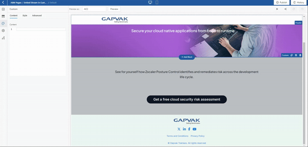 Note: You can save the Custom Page Block as a Global Page Block and use the Global Page Block in other ABM Pages. - The Embed Stream is displayed on the ABM Page in real-time.