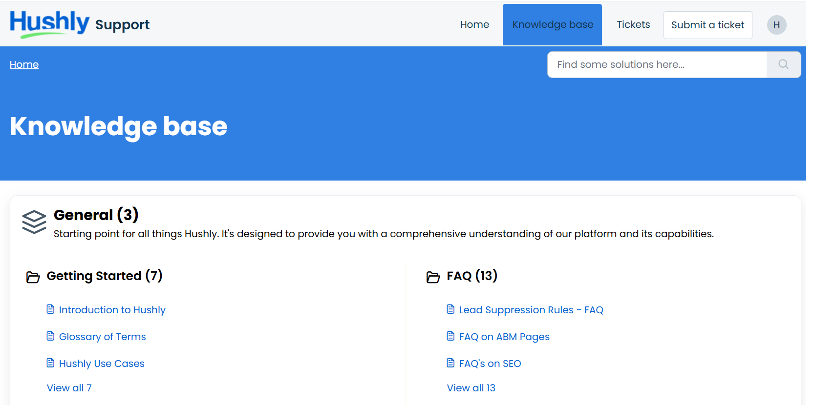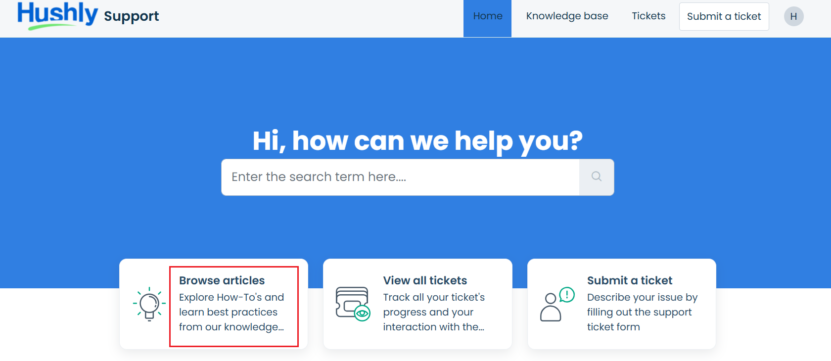 - To view the Hushly Knowledge Base, click on Browse Articles.
