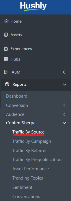 - From the Left Nav Menu, click Reports > ContentSherpa > Traffic By Source.