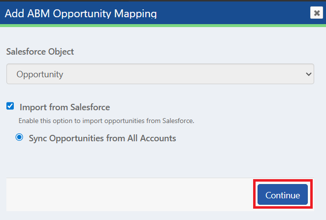 - The Add ABM Opportunity Mapping pop-up window is displayed.