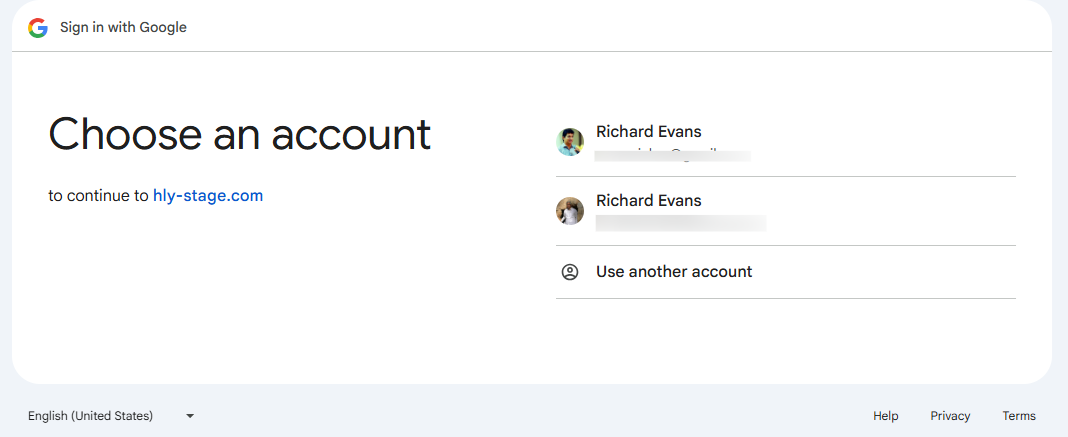 - The Google authentication page appears, prompting you to select the account to sign in to PageSherpa. Select the Account.