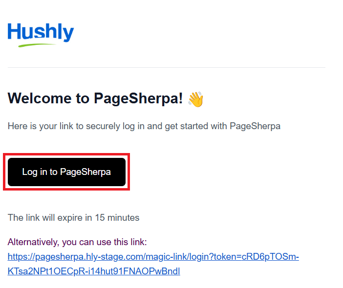 - In the email you receive, click the Log in to PageSherpa button or copy the link and paste it into your browser.