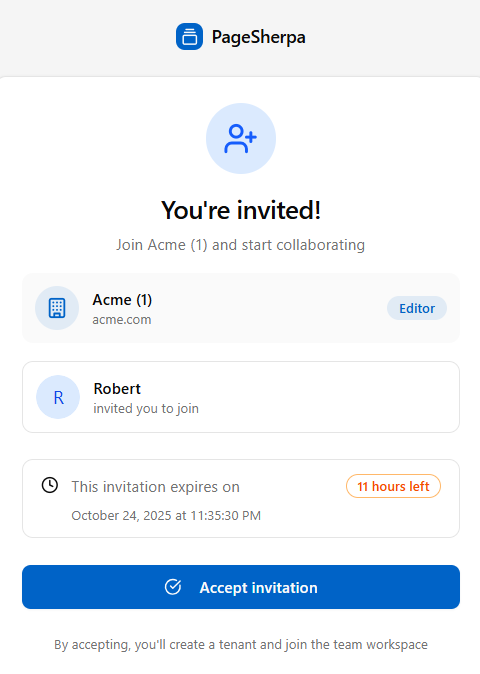 - The invited user receives an email with a message to join PageSherpa. Click the Accept Invitation button.