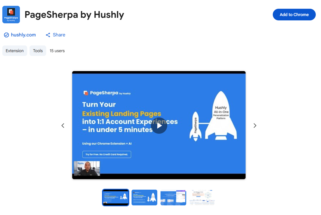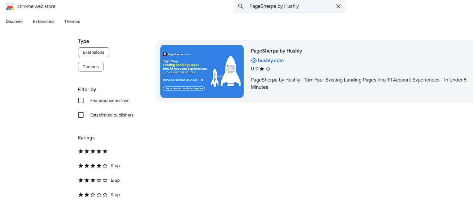 - In the search bar, type “PageSherpa by Hushly”. From the results page, select PageSherpa.