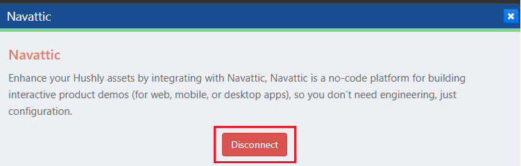 - If there are any Navattic Video Assets setup in Hushly and on clicking the Disconnect button, an error message will be displayed.