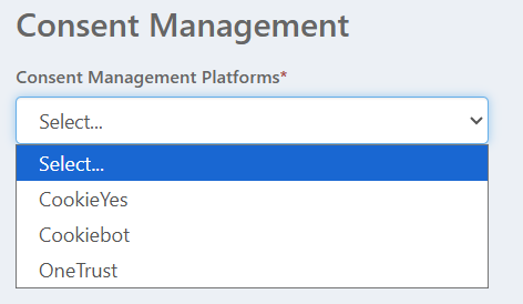 - Note: If your Consent Management Platform does not appear in the dropdown list, please contact your Customer Support Manager to have it added.
