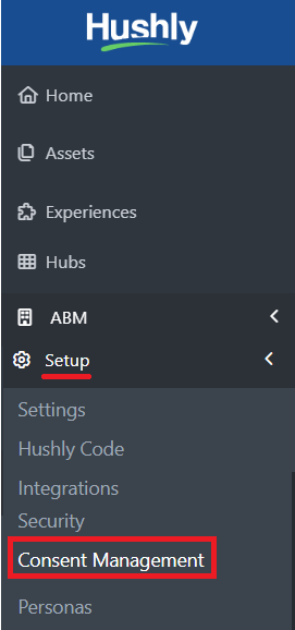- From the Left Nav Menu, select Setup > click Consent Management.