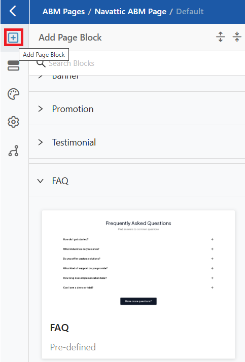 To add a FAQ Page Block to your ABM Page, follow the steps below: