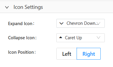 - Icon Position: The Icon Position determines where the expand or collapse icon appears in relation to the content, either on the left or right, helping to align the layout with your design and readability preferences.