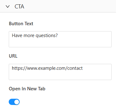 - Open in a New Tab: When toggled on, clicking the CTA will open the destination in a new tab, keeping your current page active in the background.