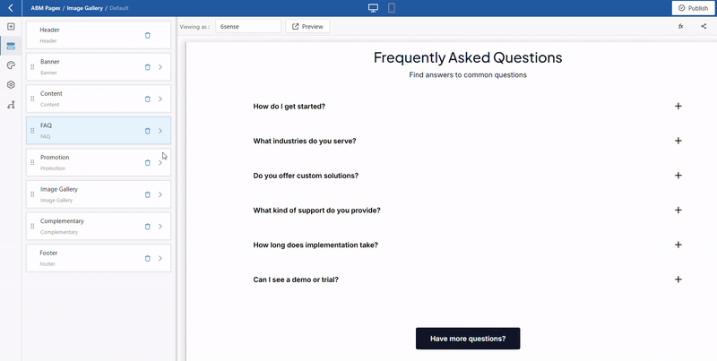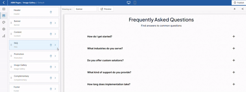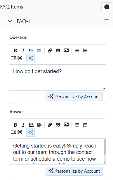 The FAQ ABM Page Block allows you to present clear, structured answers to commonly asked questions directly on your ABM page. This block helps address key concerns, reduce friction, and improve engagement by providing relevant information in an easy-to-scan format.