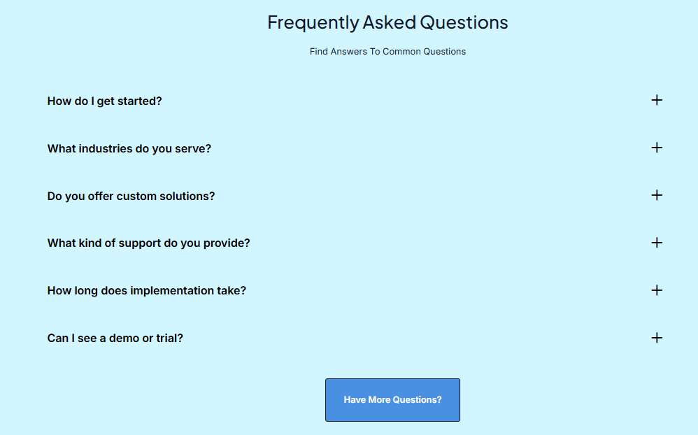 All Collapsed: All FAQ items remain closed when the page loads.