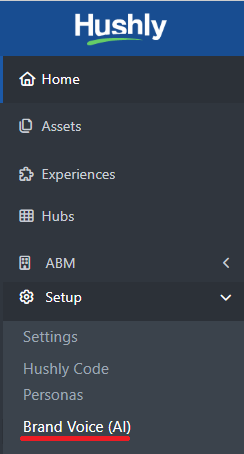 - From the Left Nav, click Setup > Brand Voice (AI).