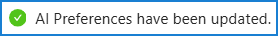A confirmation message is displayed indicating that the AI preferences have been successfully updated.