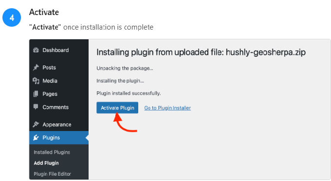 The GeoSherpa plugin installation is the process of adding the GeoSherpa integration component to your WordPress website. Once installed and activated, the plugin enables seamless connectivity between your WordPress site and the GeoSherpa platform, allowing your website to communicate securely and support GeoSherpa features and services. This integration prepares your website for configuration and ensures it can interact properly with your GeoSherpa account.